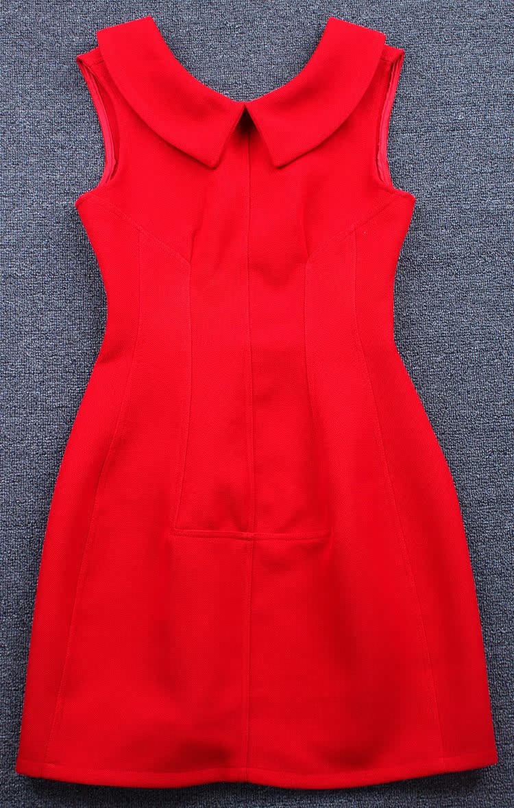【商品款式】凱姿2014早秋新款女裝硬質棉紡氣質娃娃領無袖蓬蓬花苞裙連衣裙子