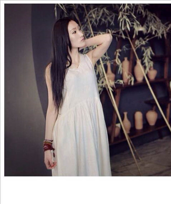 裙子板式簡約,亞麻質地透著強勁的質感