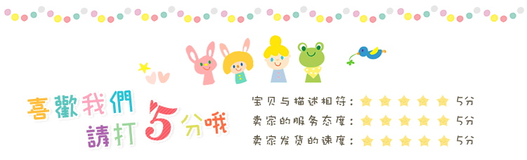 5.我們非常重視每一個評價,更重視每一位親的感受。在您收到商品后有任何問題請聯系我們,我們會盡力幫您處理,不希望有不聯絡就給不良評價的哦^_^。
