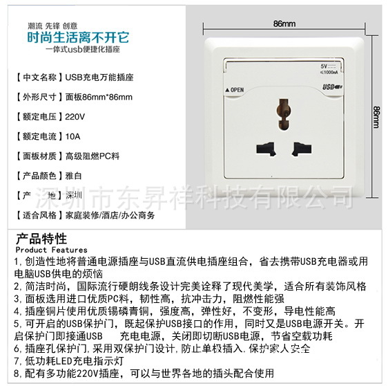 設計這款產品的目的,是更加方便現代人的電器化生活?,F在,大量的小型用電設備,例如手機、相機和移動娛樂產品,都是采用USB接口充電,需外接轉換器或實用特殊的充電設備,而USB充電墻壁插座的應用就可省去這些轉換設備,非常符合現代生活需要,讓充電更加輕松方便,可以省去不少麻煩。