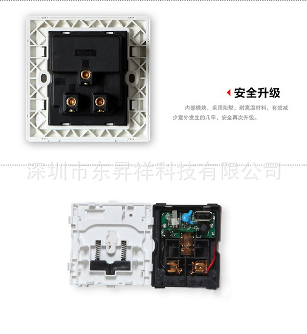 6,插座孔保護門,采用雙保護門設計,防止單極插入,保護家人安全。