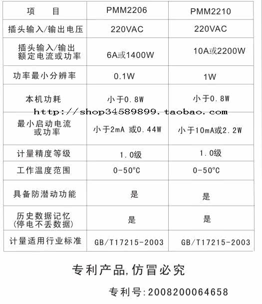 款計量插座第二代。功率小分辨率PMM2206 0.1W PMM2010 1W