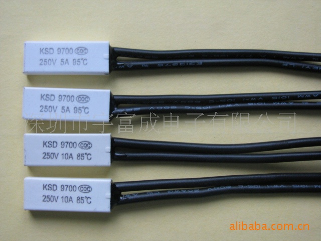 將帶有環保型銀觸點的彈性元件連接在底板上,底板與彈簧片裝有感溫靈敏的雙金屬碟片,嵌入金屬外殼/陶瓷外殼或PBT外殼。熱量傳到雙金屬片,達到雙金屬片的規定值時其瞬間動作,這樣切斷電路,當溫度下降到復位溫度時,雙金屬又迅速閉合,再次接通電路。