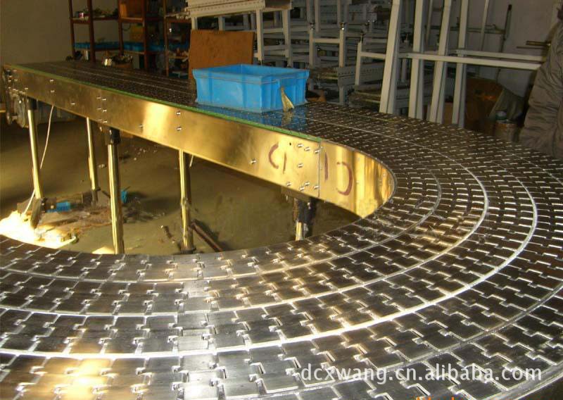 3.鏈板輸送機一般都可以直接用水沖洗或直接侵泡在水中。設備清潔方便,能滿足食品、飲料行業對衛生的要求。