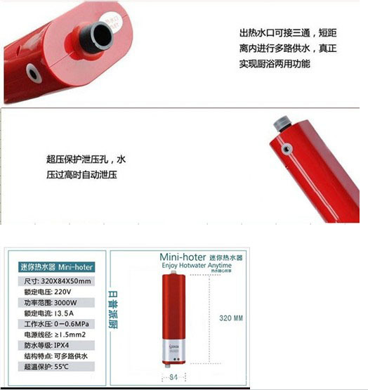 3、廚房熱水、浴室淋浴、日常洗滌等,可廣泛應用于家庭、商務寫字樓、企事業單位、賓館等,或一切需要供應熱水的公共場所。體積小巧,安裝方便,操作簡單。