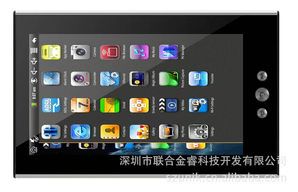 7" WSXGA Glossy LCD, 800x480像素,電阻式觸摸屏