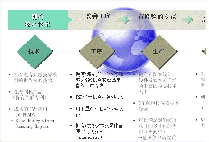 我公司是致力于電容式觸摸屏研發、生產、銷售的專業制造商,公司采用世界先進工藝,投入資金2000萬元,擁有廠房面積26000平方米,現有千萬級凈化車間4000余平方米,員工人數300多人。2.5代皇光Sensor制層線2條,水膠貼合機20臺,FOG壓合20臺??筛鶕蛻舻囊?,提供26寸以下的電容觸控屏。目前研發的多點電容觸摸屏,主要以G G結構為主。支持10點觸摸,滑動,翻頁等功能。月產能100萬片。產品廣泛應用于通訊、家用電器、工業控制、儀器儀表、車載顯示、、手機、GPS導航、數碼相框、平板電腦、上網本及其他信息終端領域。產品銷往全國各地及出口歐、美、亞,非等國家和地區。