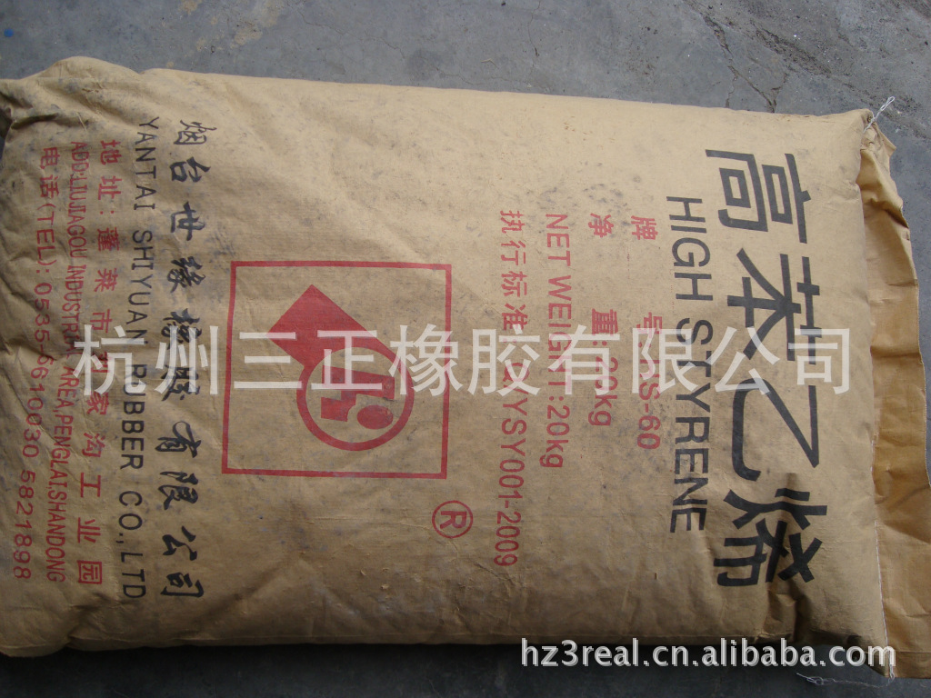 高苯乙烯是丁苯橡膠的一個特殊品種,由丁二烯和炳乙烯共聚而成,經凝聚洗滌,擠壓脫水,干燥制得產品。本產品為易相互粘結的白色片狀橡膠顆粒,無毒,無臭,可燃,具有雜質含量低,質量穩定等特點,由于其組份中苯乙烯含量較高,使其制品的耐磨性能,耐老化性能,硬度,剛性,撕裂強度和定伸強度大幅度提高。