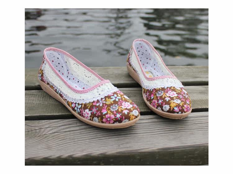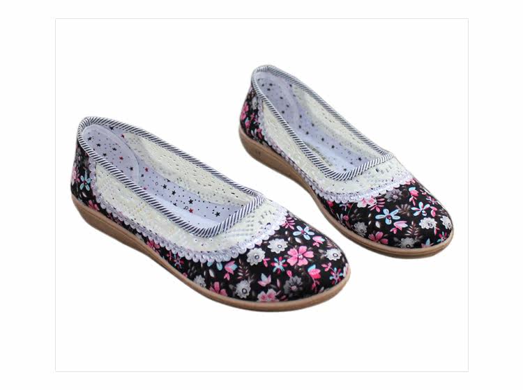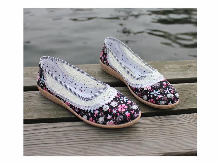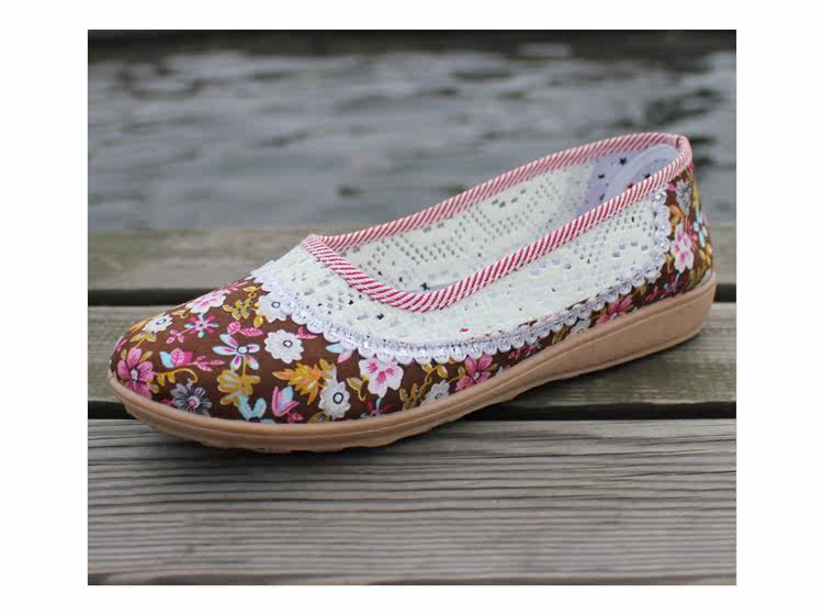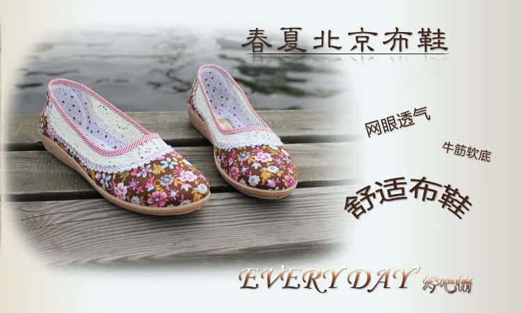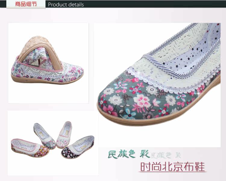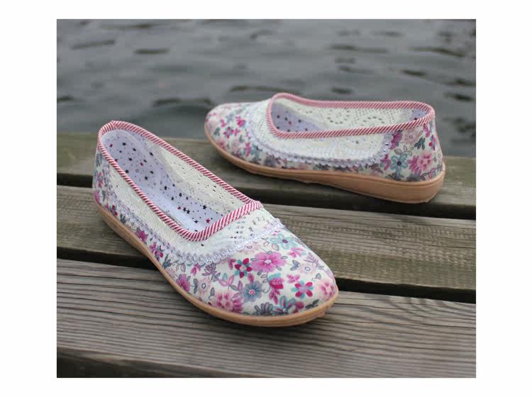 欣清老北京布鞋 女單鞋低幫繡花網眼鞋 夏季居家透氣軟底孕婦鞋