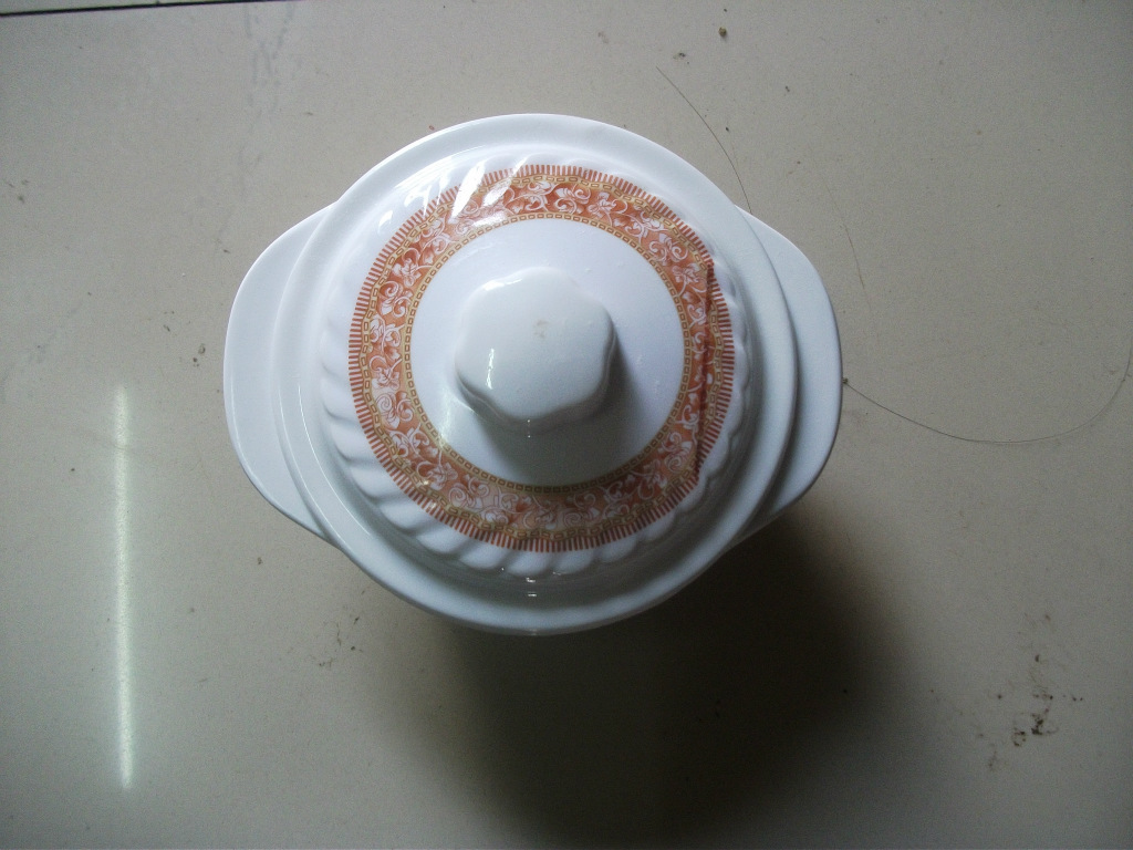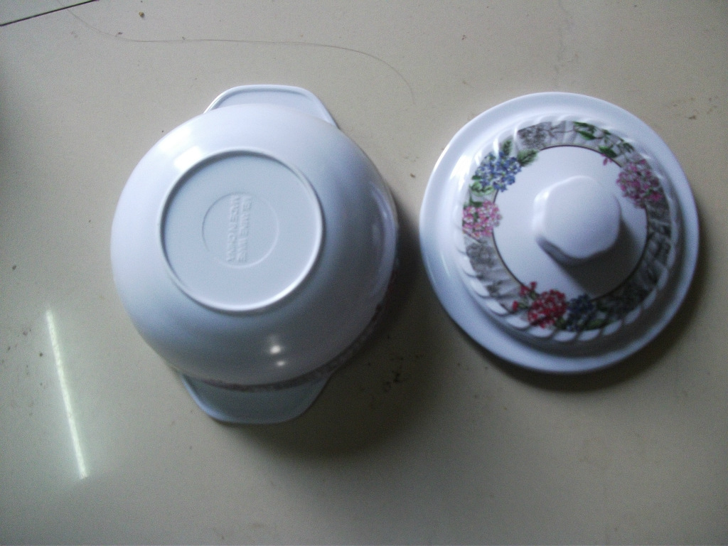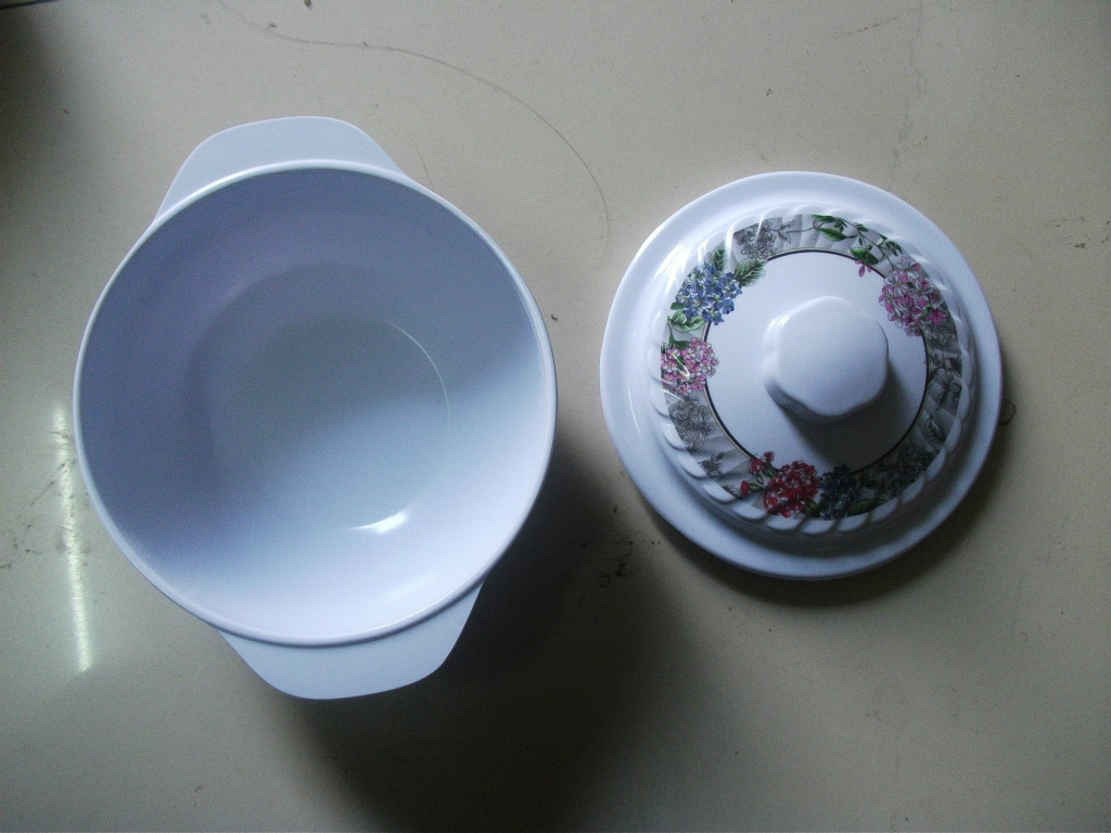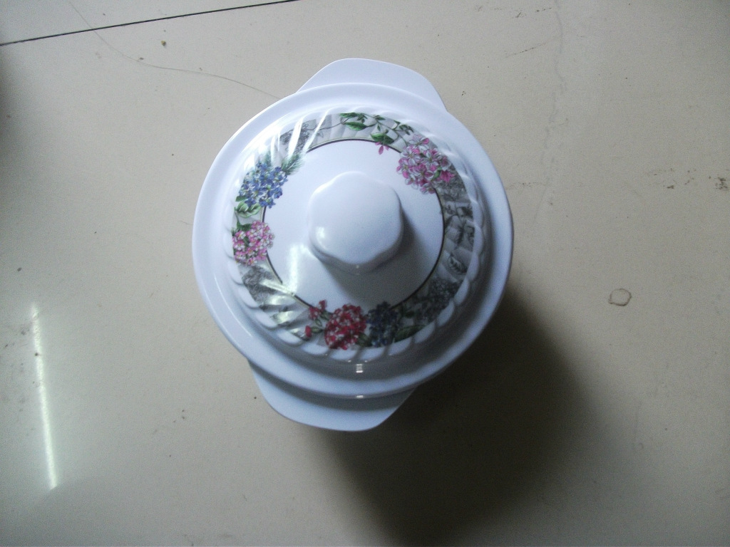 精品推薦 西式不規則精美印花仿瓷碗碟 密胺餐具雙耳蓋碗低價批發