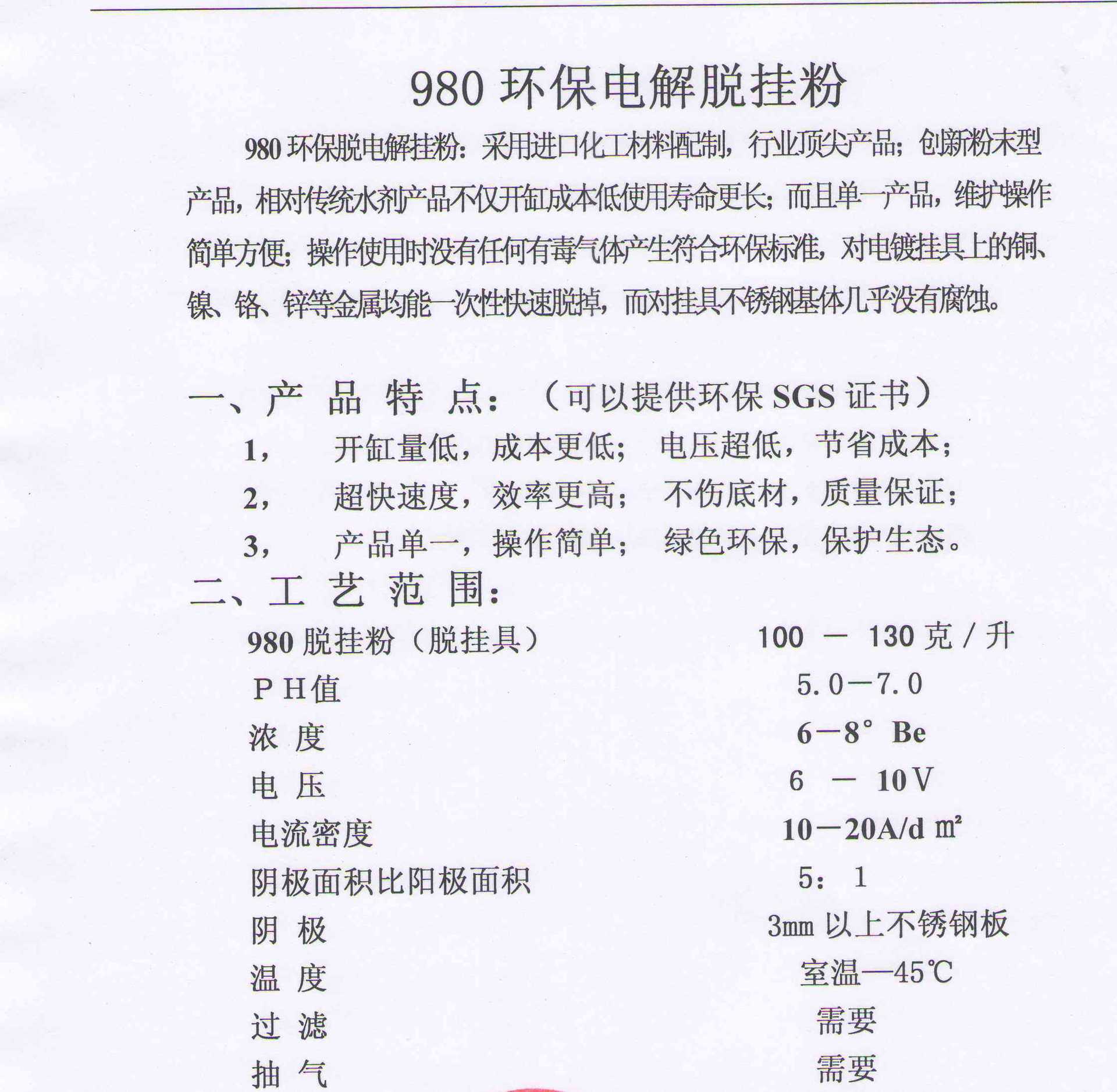 1、開缸量低,成本更低;電壓超低,節約成本;2、超快速度,效率更高;不傷底材,質量保證;3、產品單一,操作簡單;綠色環保,保護生態。