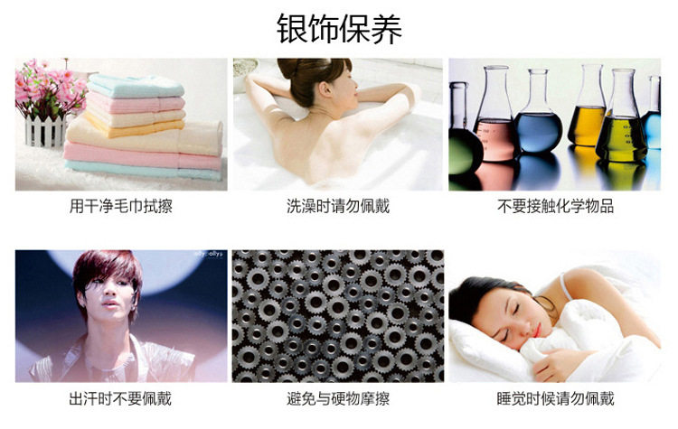 3、保持銀飾的干燥,別戴著游泳,切勿接近溫泉和海水。不用時可用棉布或面紙輕拭表面,清除水份和污垢,將它置放于密封的袋子或盒子中,避免與空氣接觸。