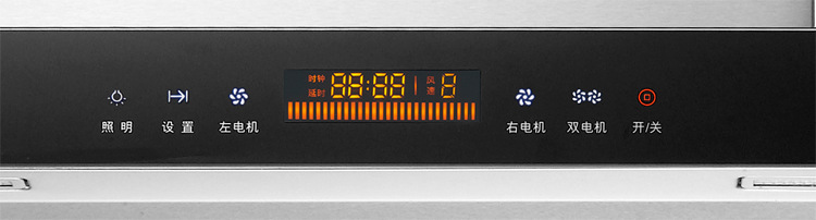 4、配置可調鋼化玻璃前條,防止油煙外溢,突顯細節功力;