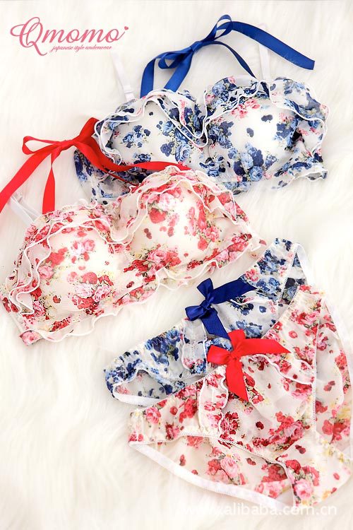 V2071日單外貿 防走光文胸套裝 碎花抹胸 甜美型女士內衣批發 B杯