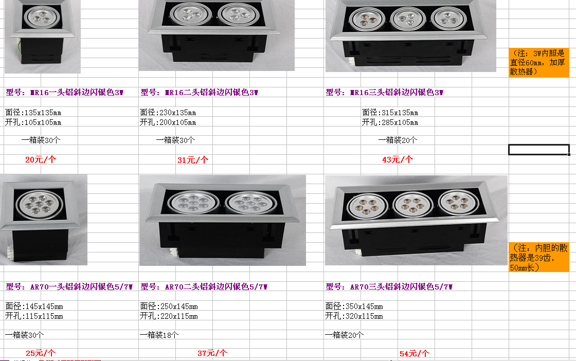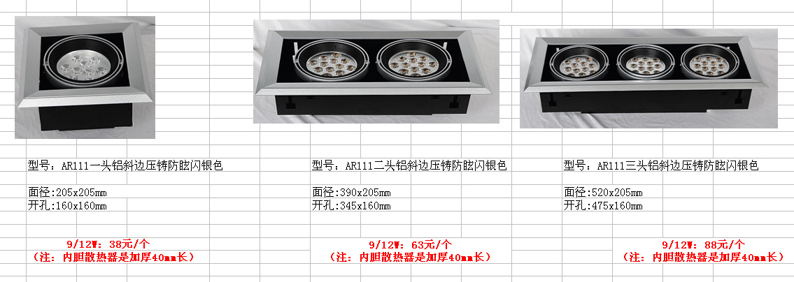 發光面22MM 發光角度25° 45° 60° 面經275*145 開孔255*125MM