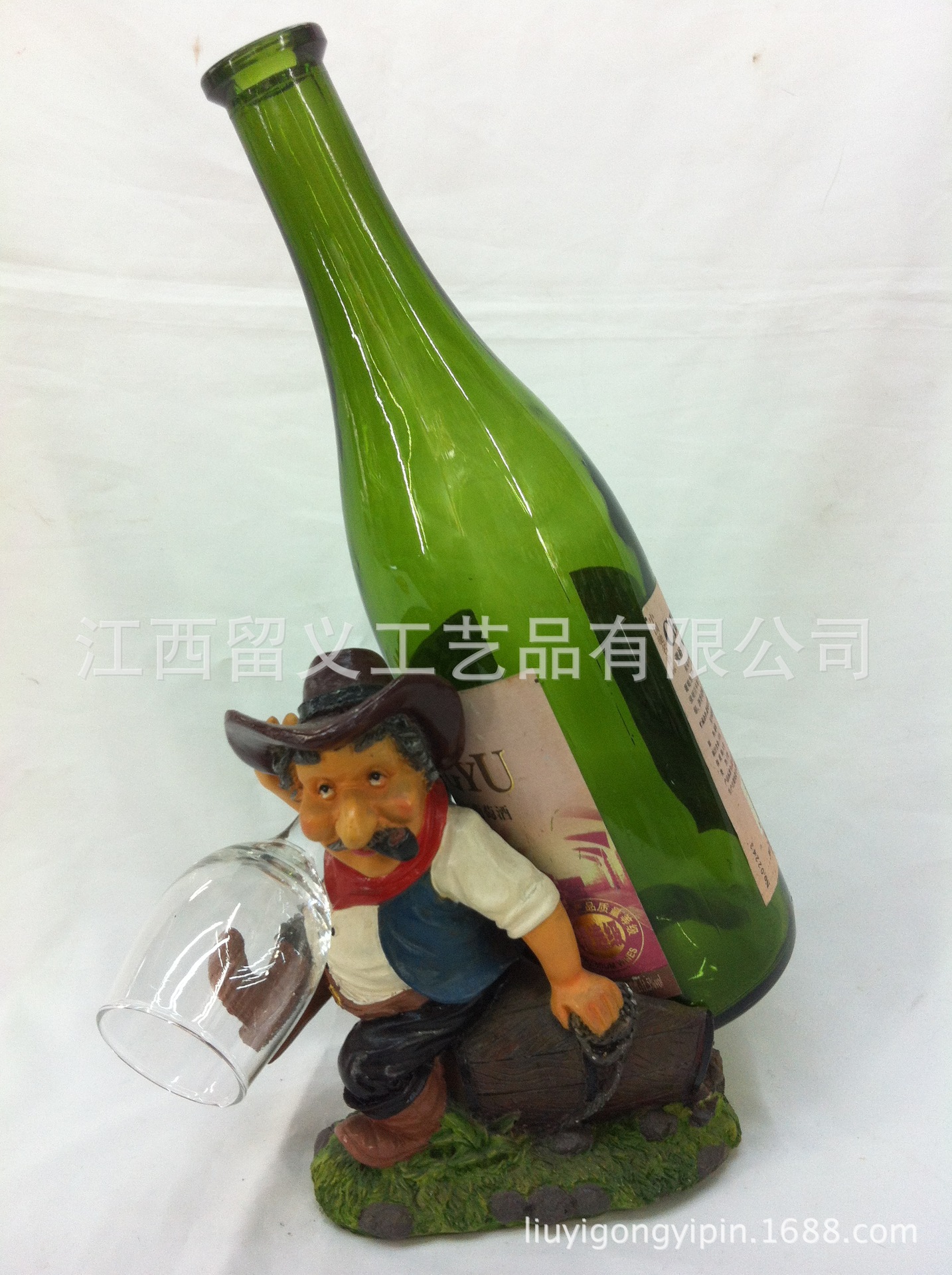 2014年淘寶熱賣 留義工藝公司廠家直銷 西部田園牛仔老人樹脂酒架