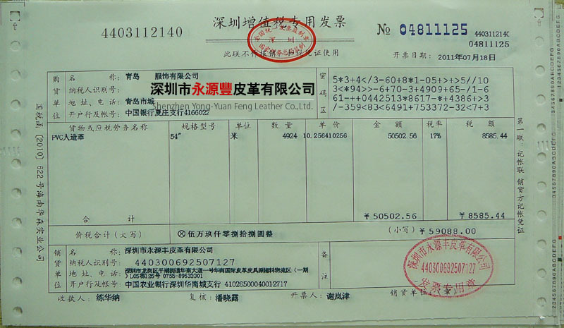 答:人造革產品一般寬度:52英寸-54英寸(可用部份即132厘米-137厘米),我們所提供的產品寬度都是足尺寸的,多的當送給你,每卷的包裝都會有明細數量,碼數都是足碼的。計算單位長度:碼(1碼約等于0.9144米)