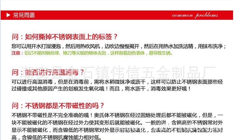 潮安縣金石鎮偉信五金制品廠座落于之美稱美麗潮州市潮安縣“不銹鋼王國”之鄉,是一家專業生產經營"偉信"牌不銹鋼湯盆、不銹鋼圓盤、不銹鋼面盆、無磁湯盆、加深圓盤、無磁反邊面盆、帶磁反邊面盆的廠家。品種、規格齊全,為客戶提供不銹鋼之鄉產品的“一站式”優質服務。