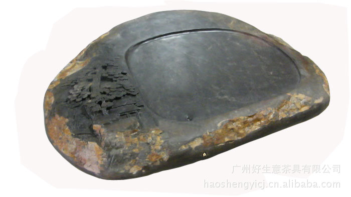 以出產端硯著稱于世的斧柯山,位于肇慶市羚羊峽東南,綿延十多公里,崇山峻嶺,氣派非凡。其東麓地域一直是沙浦鎮轄區,故有些人習慣稱這一帶產出的端石為沙浦石,還有羚羊峽以東(屬鼎湖區)的沙浦諸坑,此地自明末清初曾斷斷續續開采過硯石,沙浦石現在稱之為新麻坑。石質不俗,細膩,堅硬致密,石紋豐富,非常適合制作成茶盤,實用性很強,石色高檔大方,若有茶漬上面,顏色也是非常好看的.
