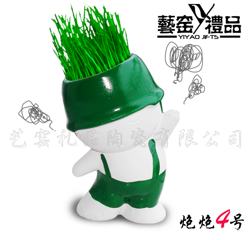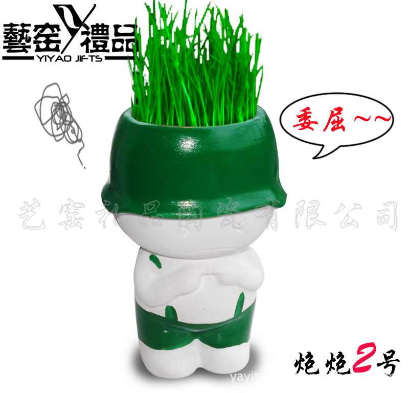 德化陶瓷工藝 創意新奇產品 桌面擺設新款青草種植兵哥 小白人