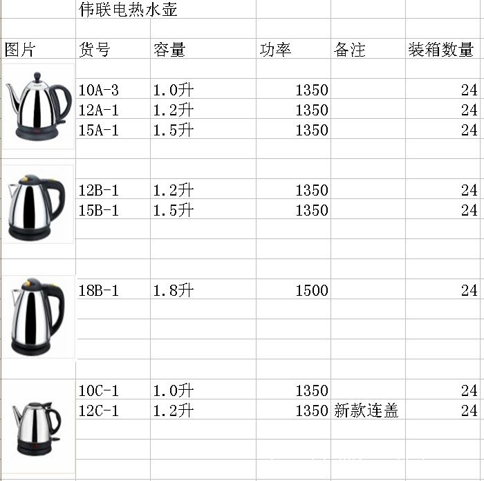 本廠生產的不銹鋼電熱水壺款式多,規格全。有小容量的電熱水壺 1升 1.2升 1.5升 1.8升,大容量的是 4升 5升 6升。歡迎來電洽談 電話(許生)QQ7