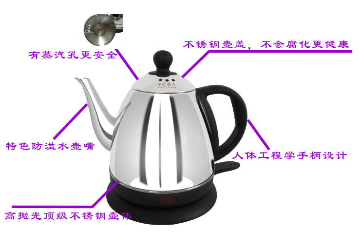 電子壺優點:采用電子感溫元件,壺內無蒸汽管,不占地方,比較好清洗。