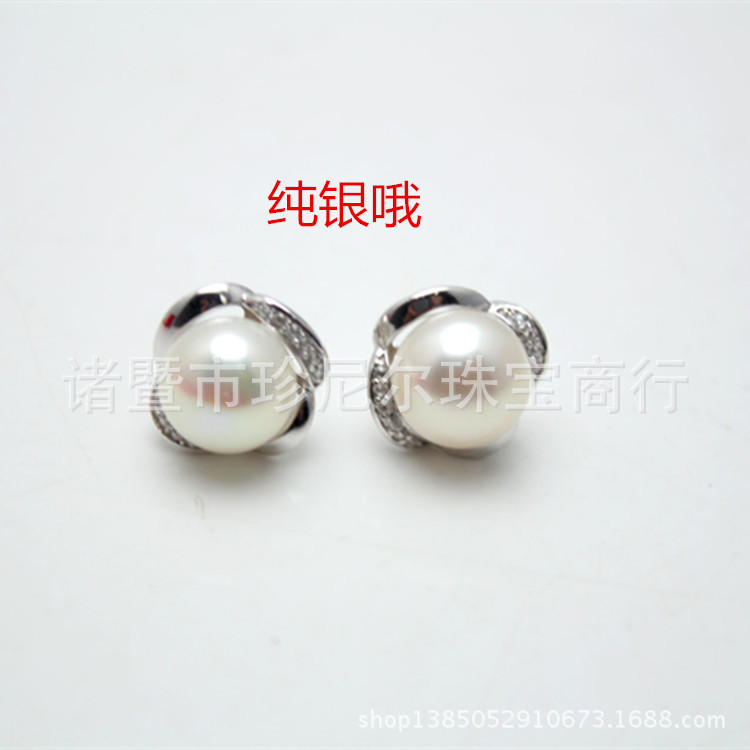 韓版精品小飾品批發 純銀鑲鉆花朵珍珠耳釘 9-10mm 強光無瑕