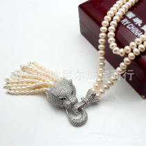 原創手工天然淡水珍珠項鏈長款925微鑲豹頭項鏈 秋冬毛衣鏈388.00