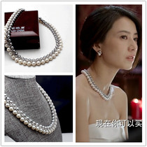 高圓圓同款 天然淡水珍珠925純銀微鑲鋯石時尚雙層項鏈 送禮盒120.00