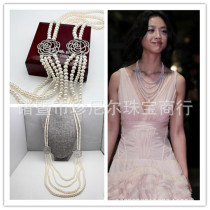 手工珍珠飾品定制 925銀微鑲鋯石玫瑰花多層毛衣鏈 湯唯款650.00此模板由【超級快車】提供