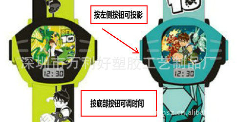 本廠供應多款投影手表,卡通兒童手表,BEN10手表,款式繁多,可定做款式、吸塑包裝及絲印LOG。