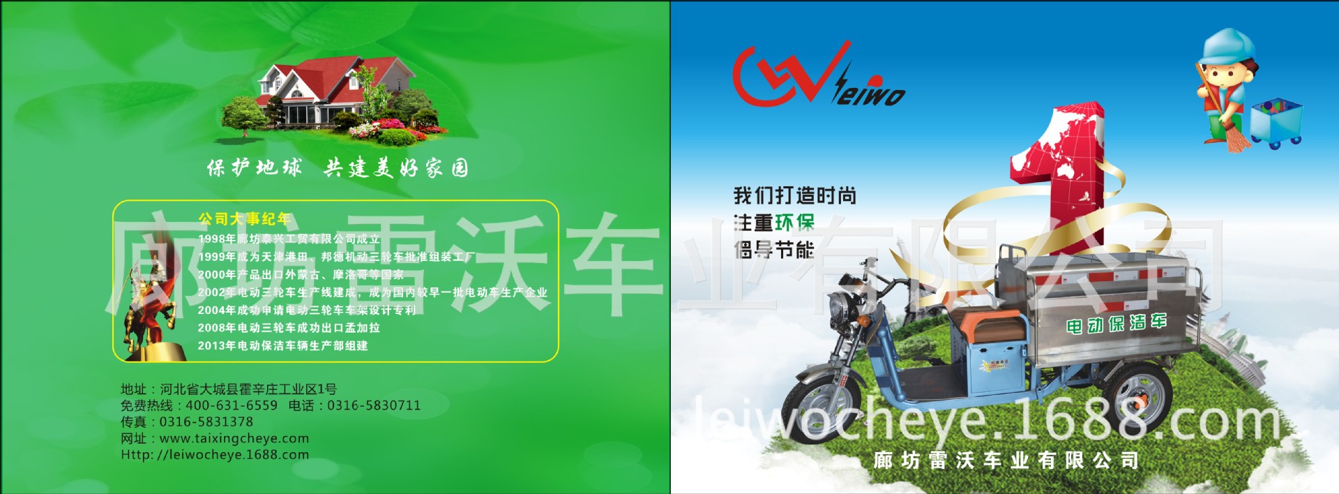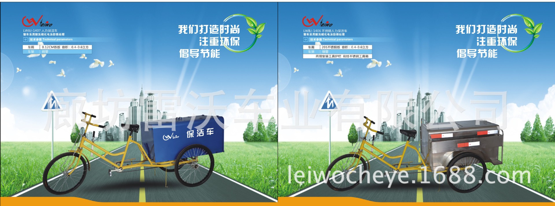 雷沃保潔車是廊坊雷沃車業有限公司新近推出的一款性價比極高的環衛車,廣泛適用于小區物業保潔,馬路清掃,廣場保潔等場合,減輕了環衛工人的工作量,舒展了環衛壓力,增加了保潔區域的一個亮點。該車采用500W-800W控制器差速無刷電機,動力強勁,爬坡能力強,并設有單人和雙人兩種座位,具有上天窗裝貨手動液壓助力翻斗功能,安全簡潔,操作方便。整車車架均采用先進的酸洗磷化電泳汽車防銹工藝,經久耐用,不易生銹,特別適合保潔車輛工作需要。垃圾箱尺寸可根據客戶需要定制。整車電池可以選擇48V12AH/48V20AH電池組.