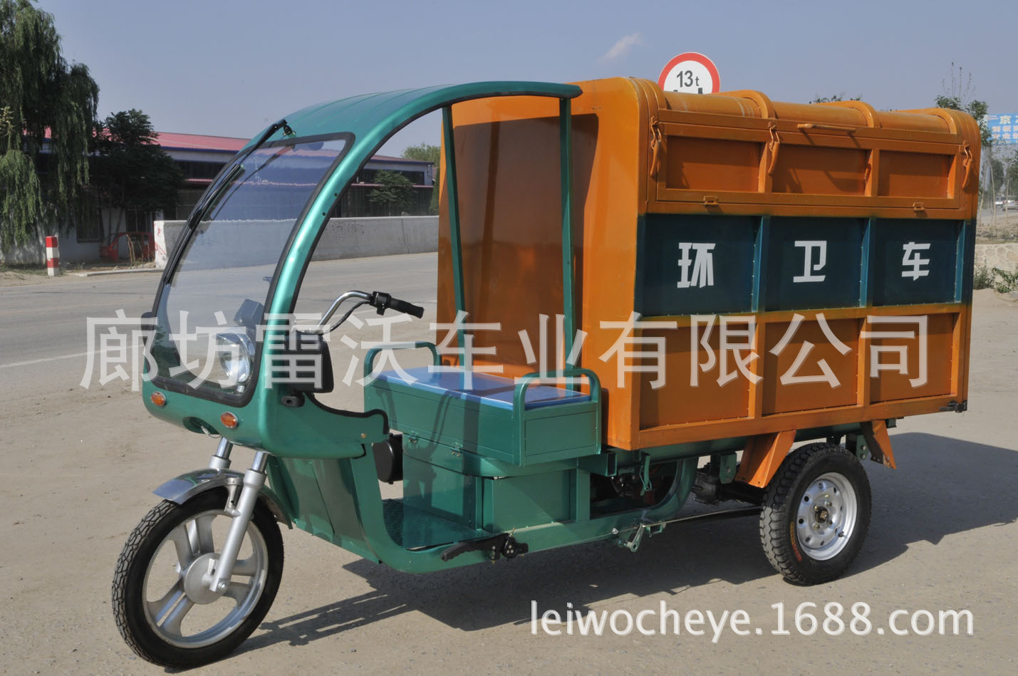 座位,具有上天窗裝貨手動液壓助力翻斗功能,安全簡潔,操作方便。垃圾箱尺寸可根據客戶需要定制。整車電池可以選擇48V12AH電池組,48V20AH電池組每組。