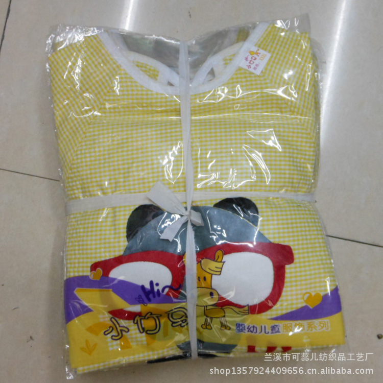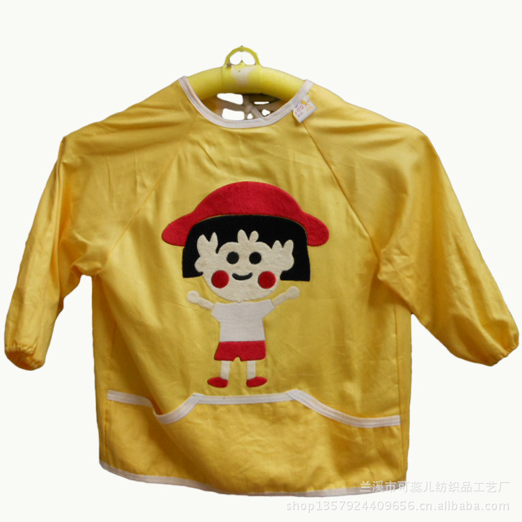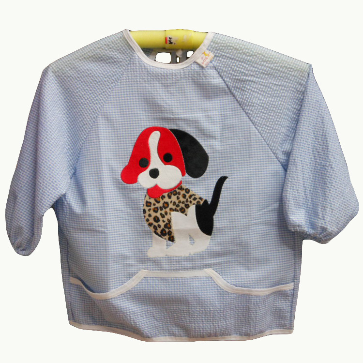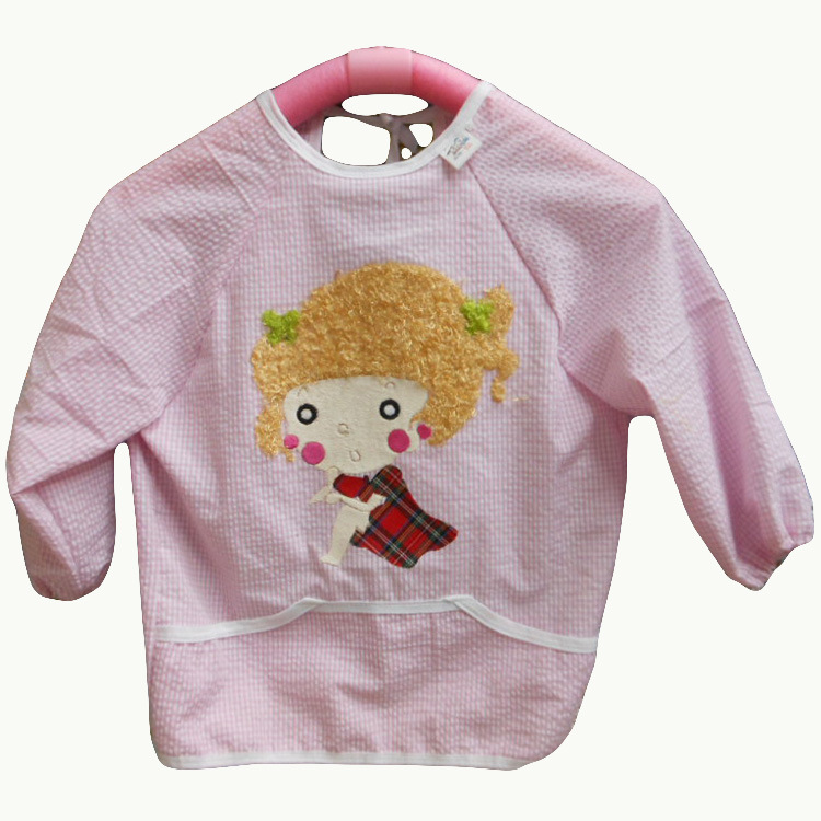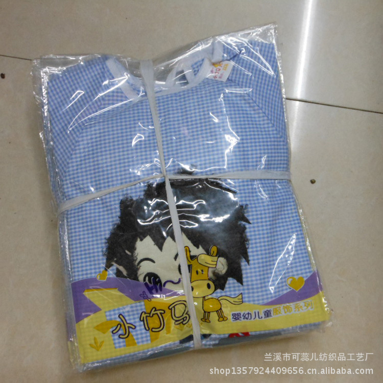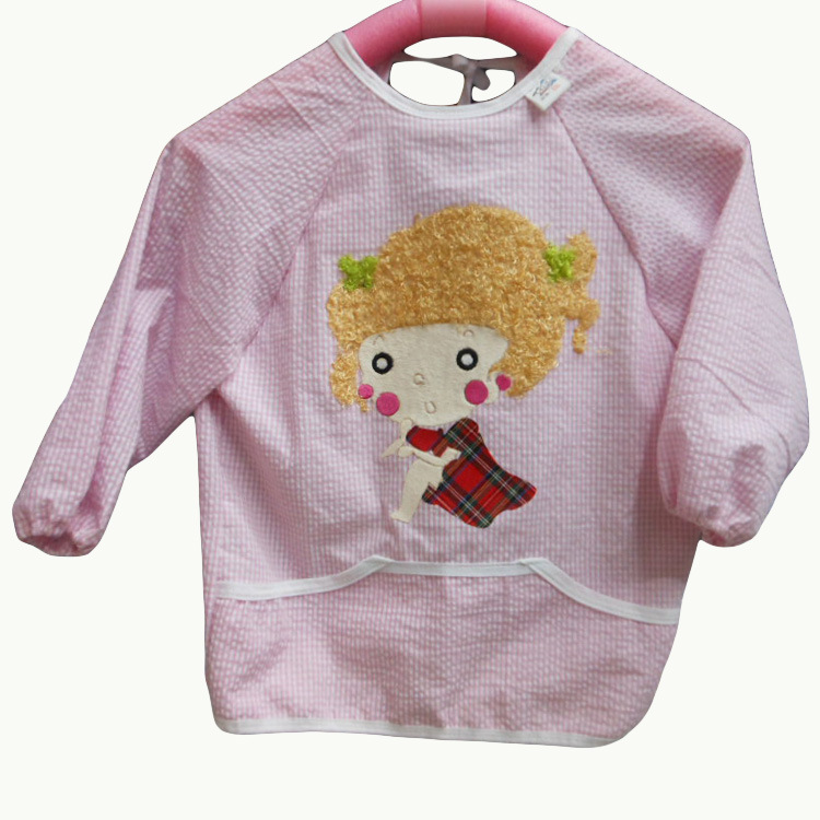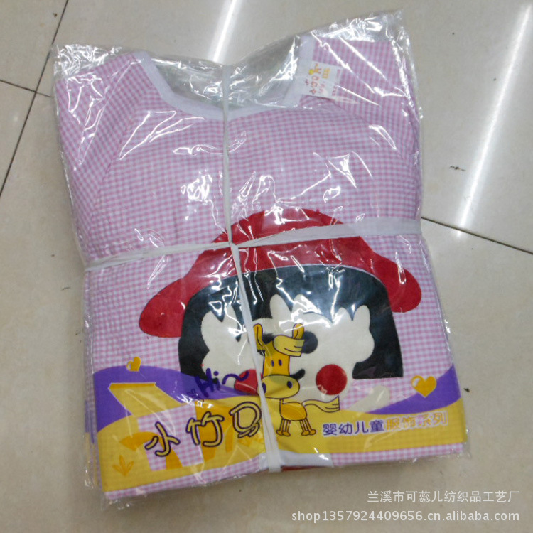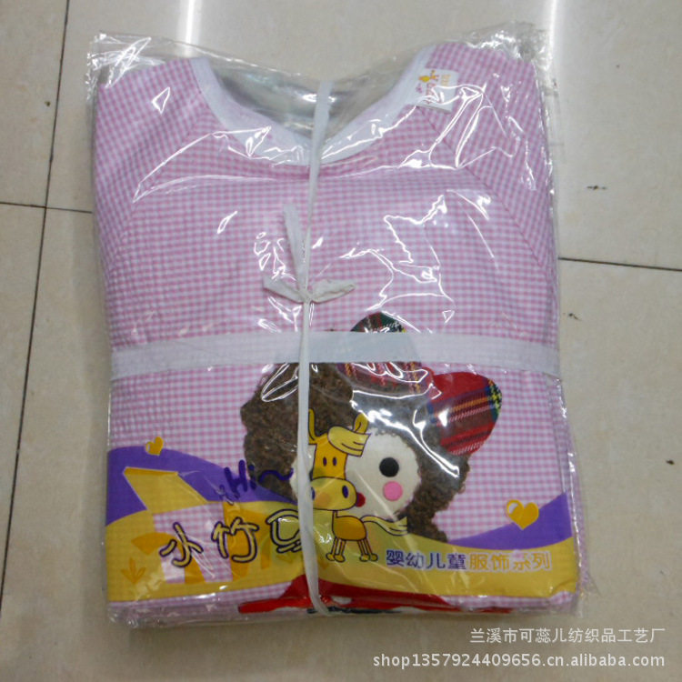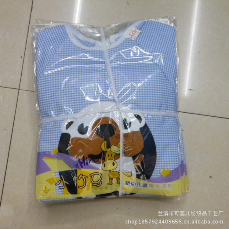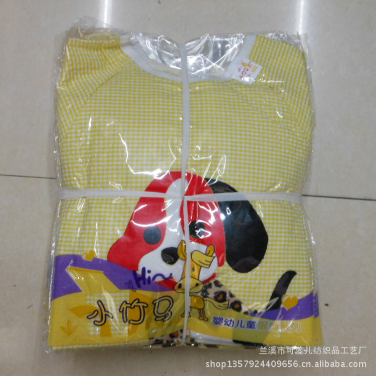 廠家直銷 毛絨卡通全棉泡泡紗嬰童防水罩衣 反穿衣