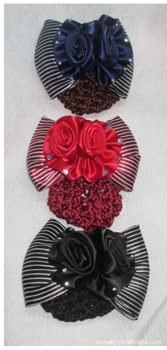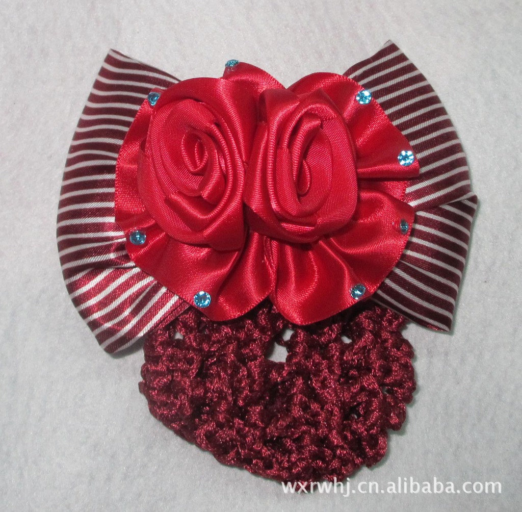 廠家大量供應雙玫瑰花發網、職業發網、蝴蝶結
