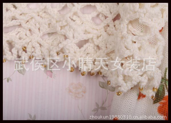 特批2012春正原單@vivi 小碎花串珠鉤針勾花邊超甜美淑女針織毛衣