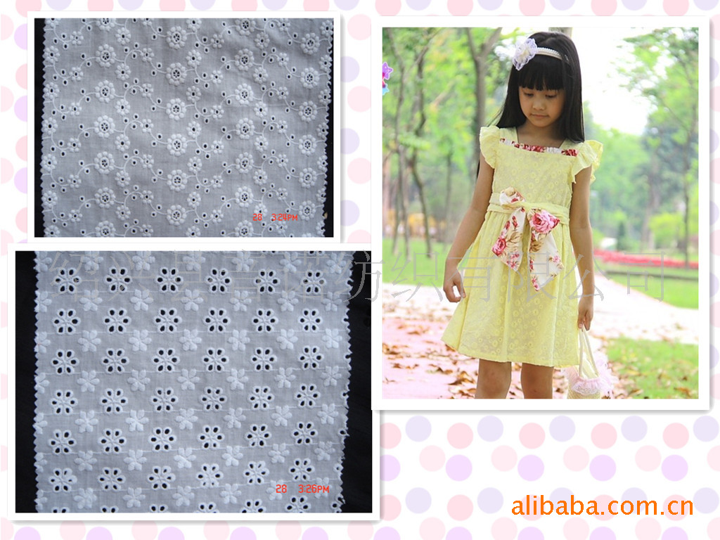 供應全棉打孔繡花布 童裝女裝面料