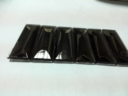 此款玻璃為凸條玻璃,中間呈圓拱狀,兩頭為6-10mm斜邊,上圖尺寸為50mm*15mm,此類產品多用在裝飾,家裝等!