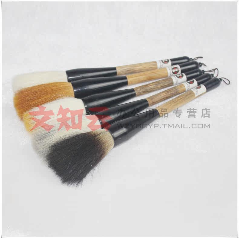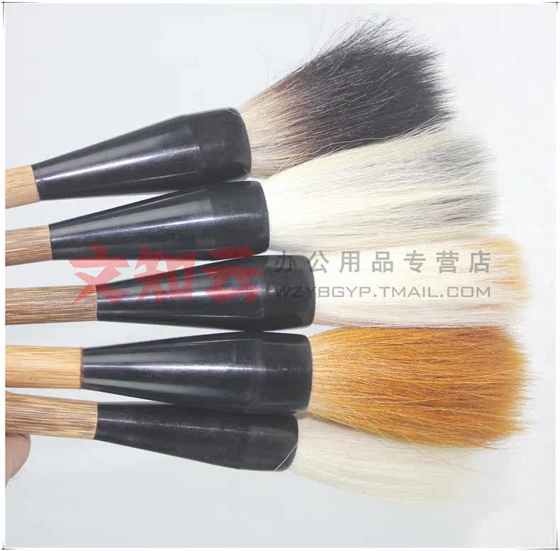 使用說明:說明:羊毫偏軟,狼毫偏硬,兼毫適中,這里就不重點講解了,主要講下石獾乃石獾箭毛、豬鬃精制而成。其石獾箭毛具有粗壯挺拔、剛強有力的優點,箭毛表面較粗糙,含墨量大,且吐墨均勻,能顯示多種效果,是畫家作松、梅、山水等畫的常用畫筆之一。彈性極強,能勾能劃,能皴能擦。但它力健有余,柔韌不足,不太適合表現大片水韻墨跡。書法方面則