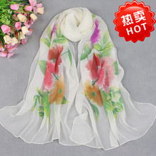 新款多色 優雅雪紡圍巾 韓版花卉長款喬其絲巾 女士時尚飄逸紗巾銷量3197