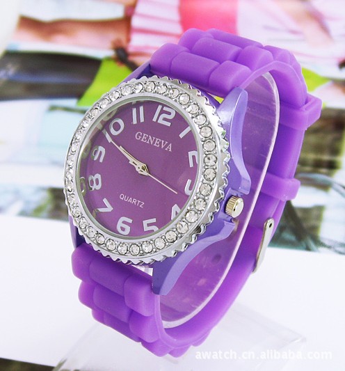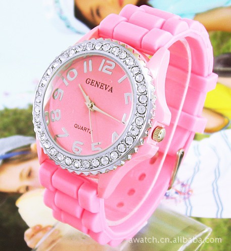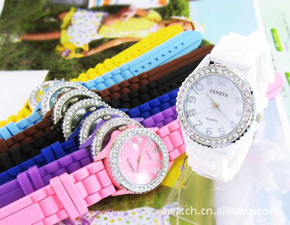 批發GENEVA日內瓦鑲鉆硅膠果凍表時尚個性合金表