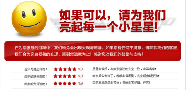 衷心希望各位買家購買前多咨詢,多比較,做到心中有數再拍下,盡量避免因反復退換給雙方增加不必要的開支和重復工作。與您的長期合作是我們的目標,只要雙方是誠心做生意的, 互相理解寬容,相信任何問題都有滿意的解決。