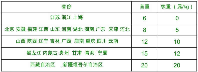 快遞默認韻達或申通(快遞隨機,若不到,請先聯系客服)快遞價格如下: