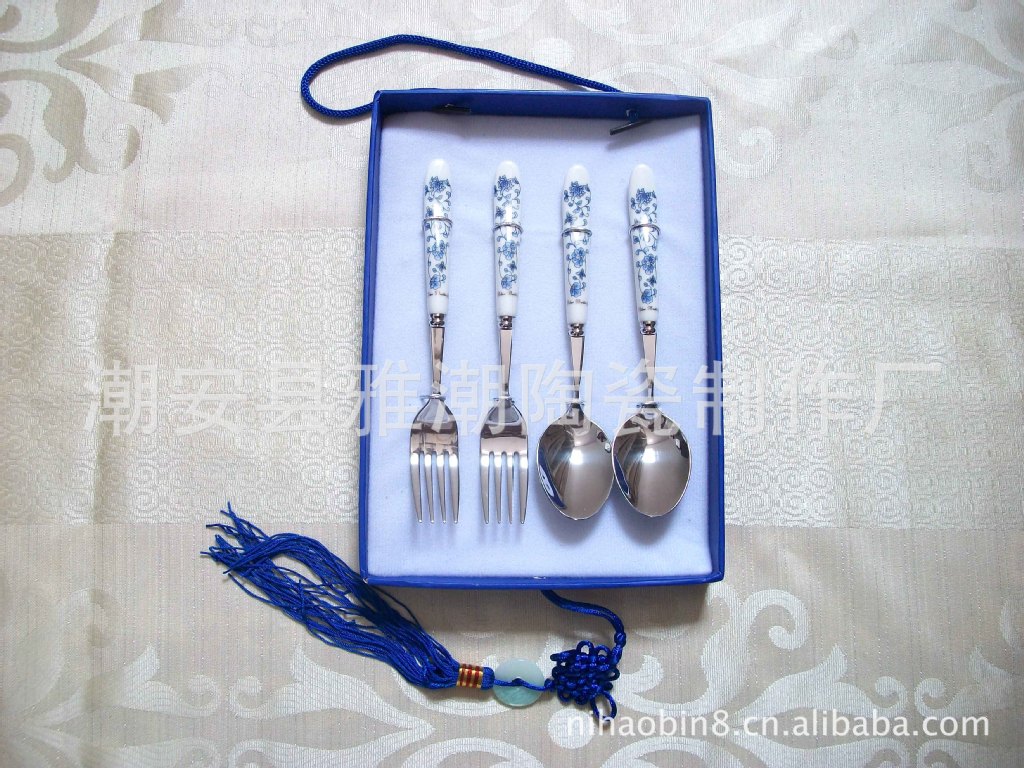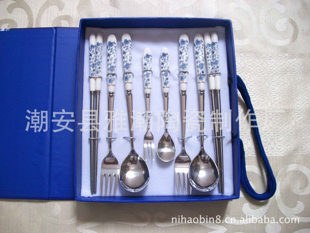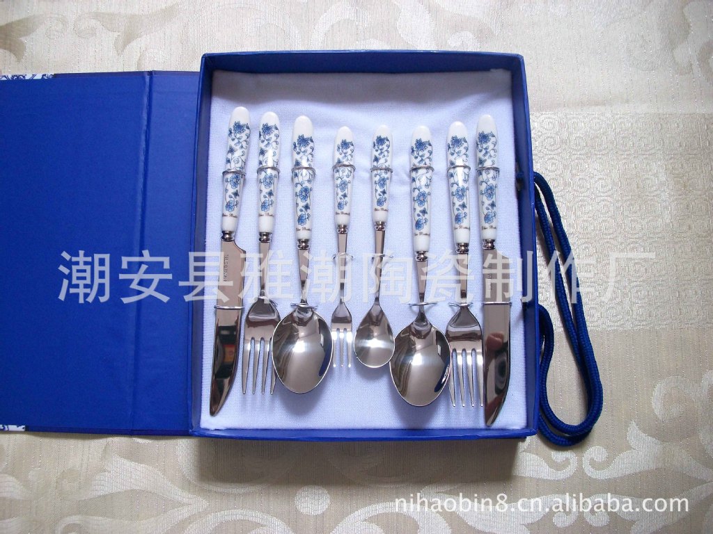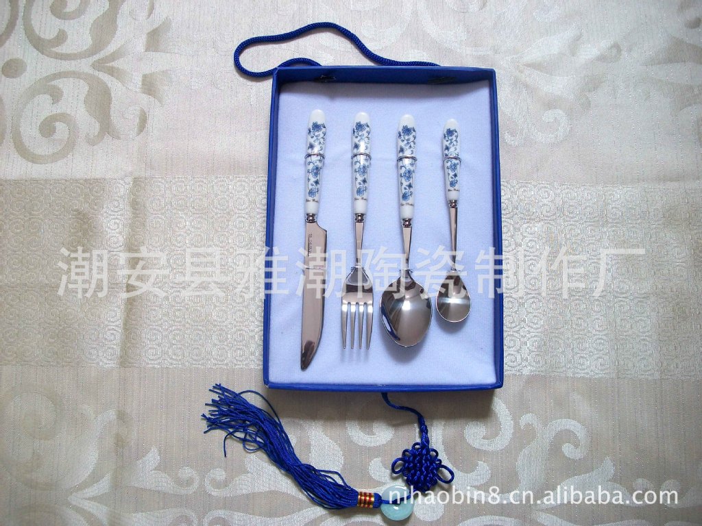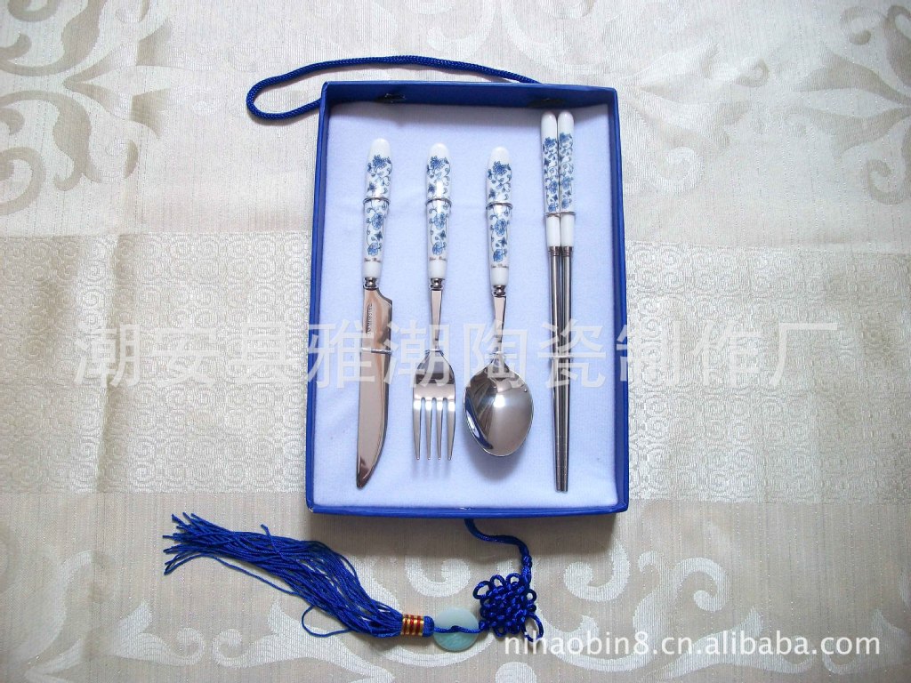 高檔陶瓷柄不銹鋼餐具 青花瓷餐具 禮品餐具