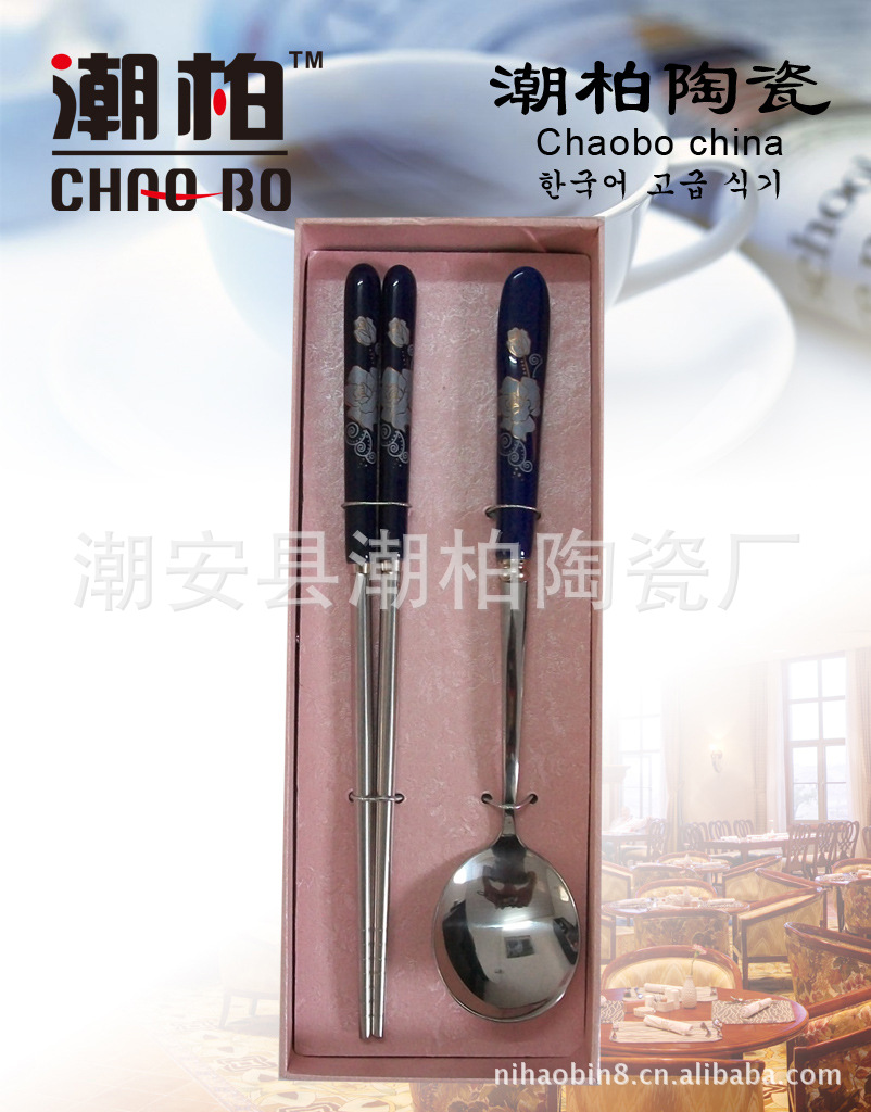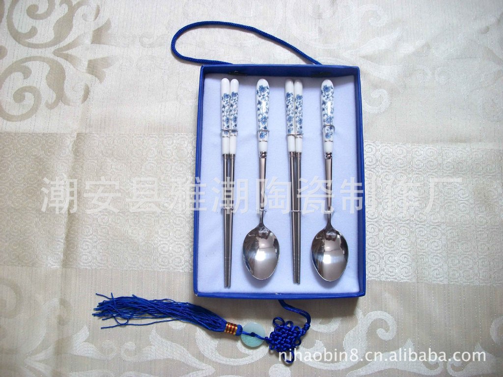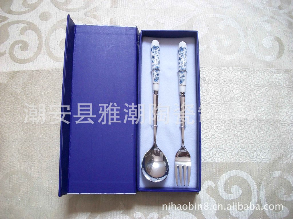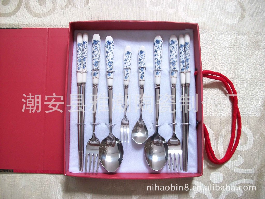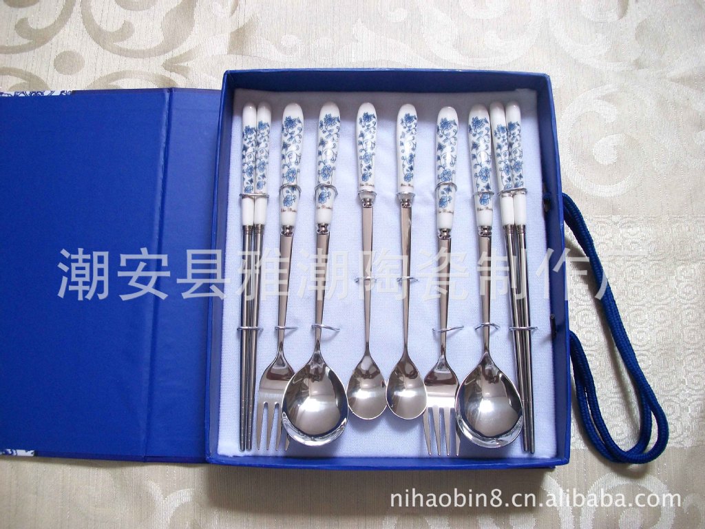 高檔陶瓷柄不銹鋼餐具 青花瓷餐具 禮品餐具