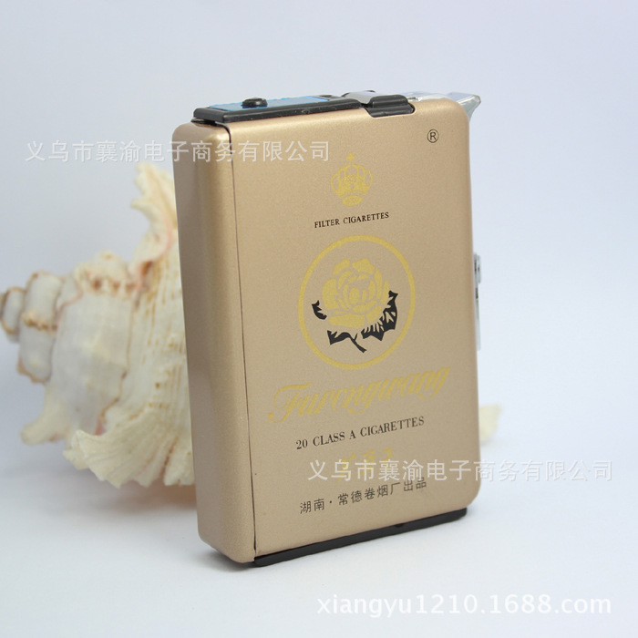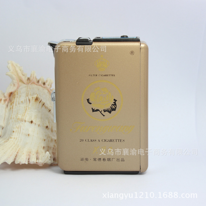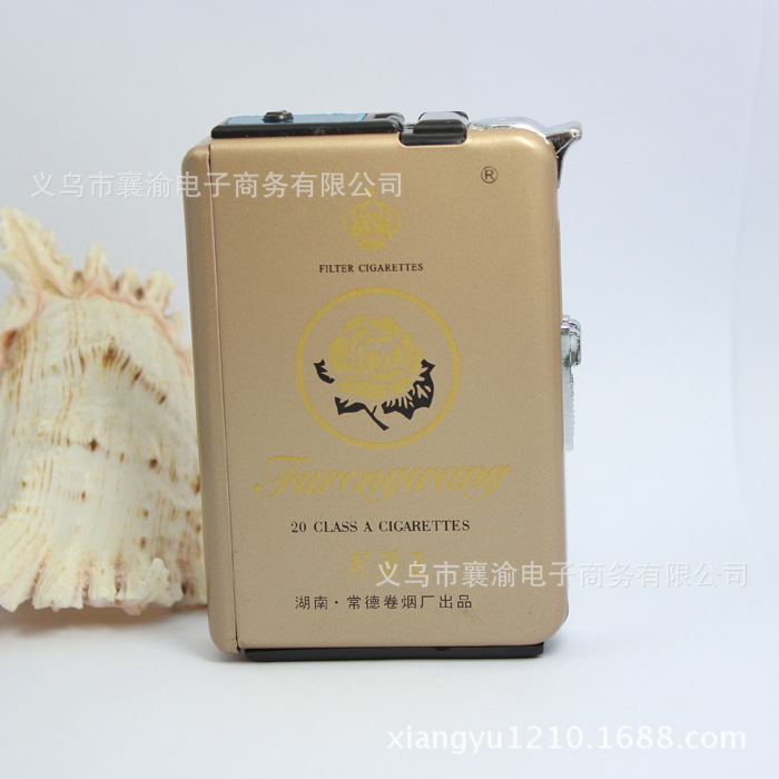 創意芙蓉防風煙盒自動煙盒帶防風打火機 烤漆煙十只裝 煙具批發
