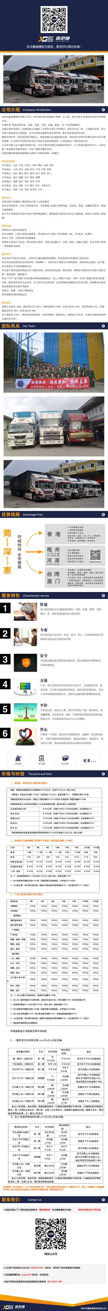 鑫港穗公司自成立以來先后設立了國內部、國際部、快遞部、營銷部、配送中心等部門,并先后在河源、深圳、惠陽、惠州、梅州、鳳崗成立分公司,業務能力遍及內陸及港、澳、臺等特別行政區我司優勢項目: 一、運輸服務 1、香港特快專線(梅州至香港兩地貨物專線快遞,惠陽、惠州、河源、梅州、鳳崗至香港運輸,惠陽、惠州、河源、梅州、鳳崗到香港貨運,香港進出口,中港貨運,中港運輸,中港快件,(中港快件,一般貨運)進出口服務。) 2、惠州特快專線 3、河源特快專線 4、梅州特快專線 5、鳳崗特快專線 6、第三方物理承運! 二、包稅進口帶貨——專業提供手機、IC、PCBA、屏、硬件、CPU等高價值電子產品進口帶貨,(時效快,梁道安全,正常一天準時到貨)。 三、香港派送——周一至周六全體派件,周六晚不發車,周日不派件。香港全區派送,節假日全體服務。24小時內香港派送不到位,公司承諾派送費用全免! 四、增值服務——快速派送、流通加工、保險業務、代收貨款、倉儲、專業的物流解決方案提供商,你只需提供你的詳細需求,我們會給你制作適合你的物流方案,讓你做到省心,放心??! 我們的宗旨是:安全、快捷、準時、價優 惠州至香港直達專線鑫港穗中港物流專業打造大陸內地惠州至香港的專線物流零擔小票業務。 聯系電話: 聯系QQ:0