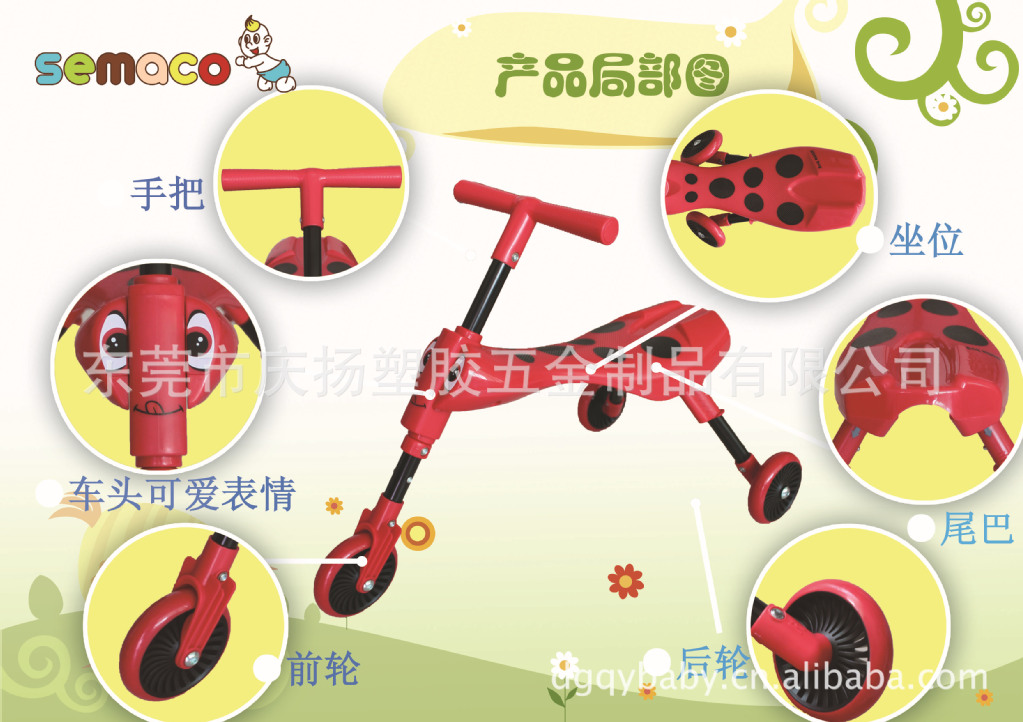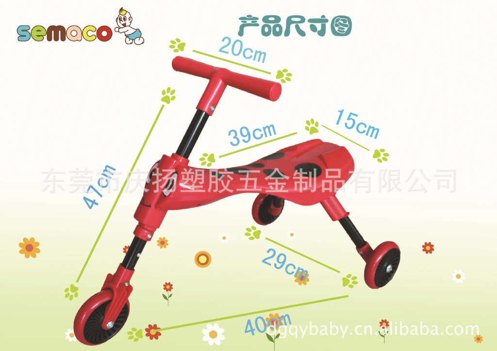 兒童折疊玩具車,小孩雙腳著地,用力向前踏行,像只小螳螂一樣往前跑!
