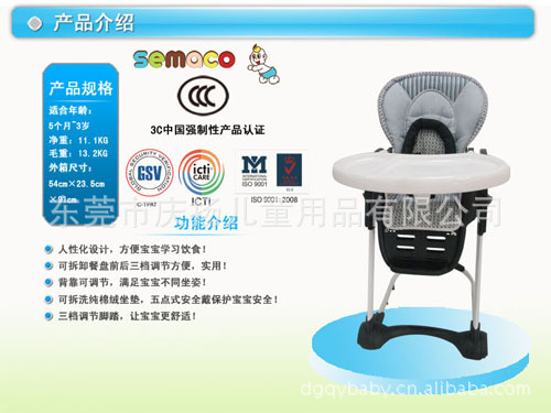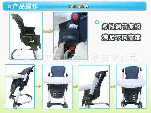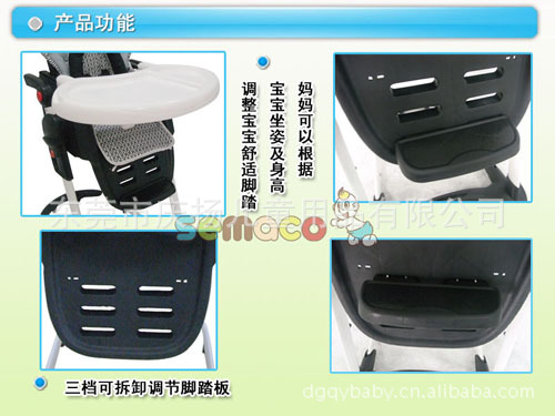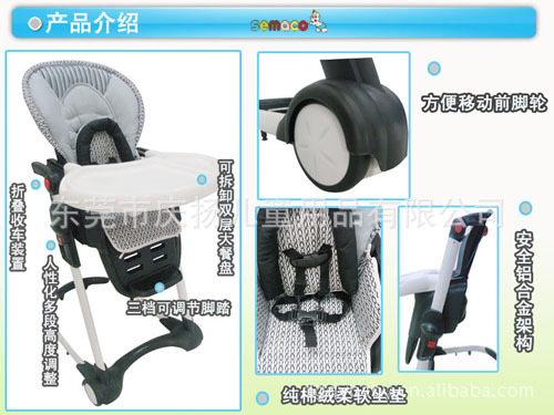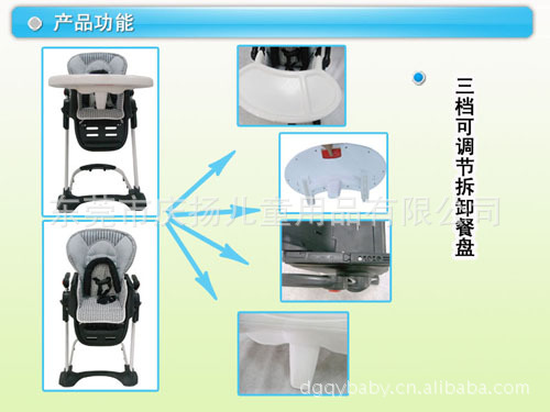 產品特性:座椅位置可調節 高度可調節 餐盤可調節 座位傾仰可調節