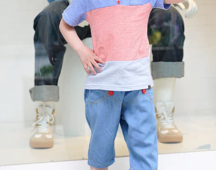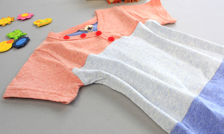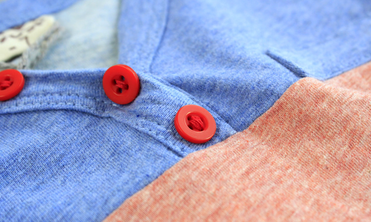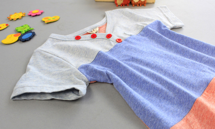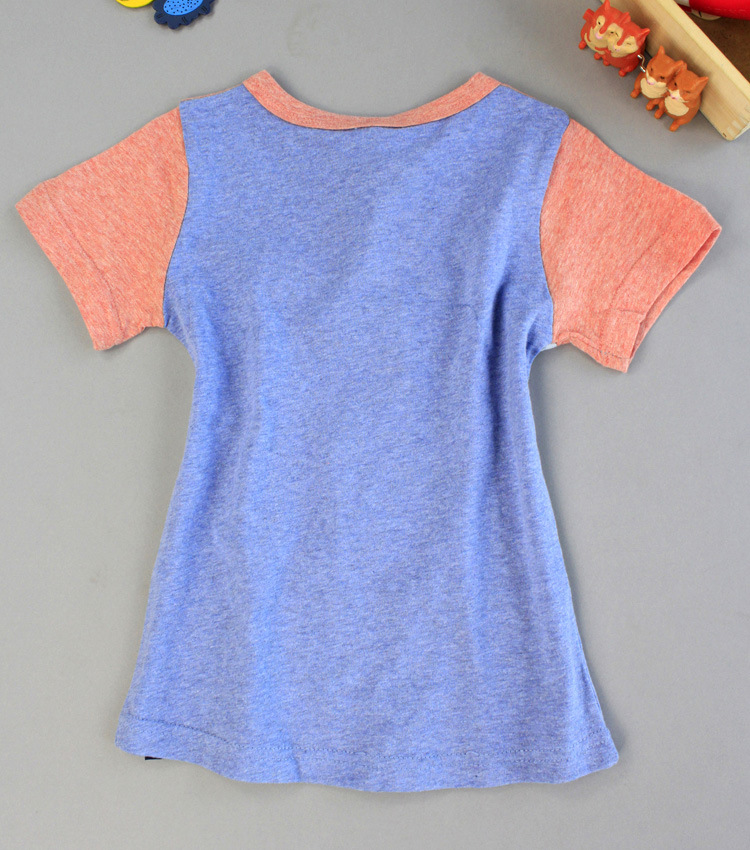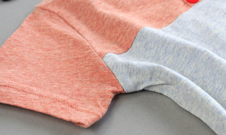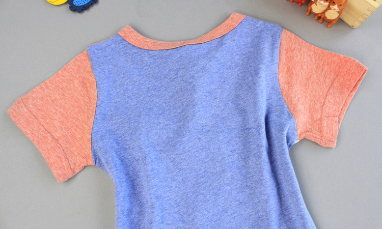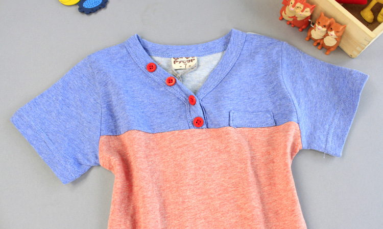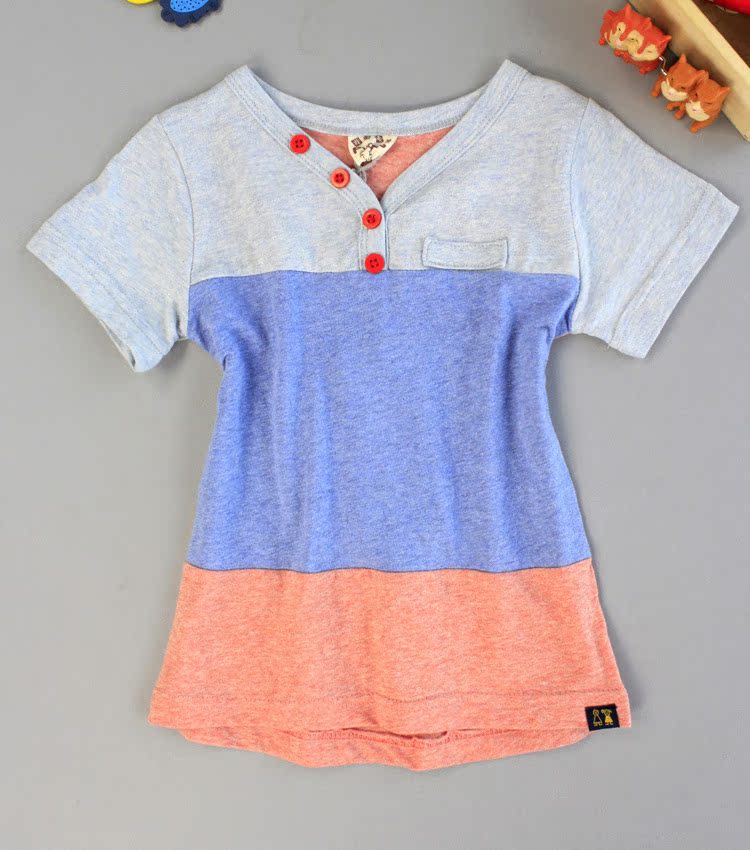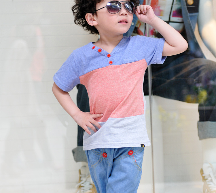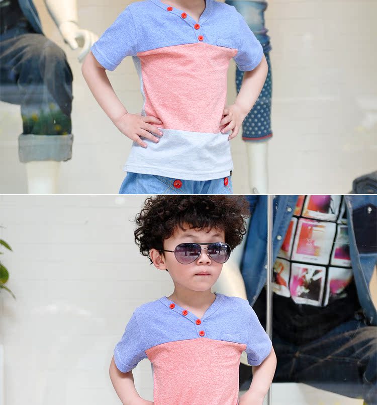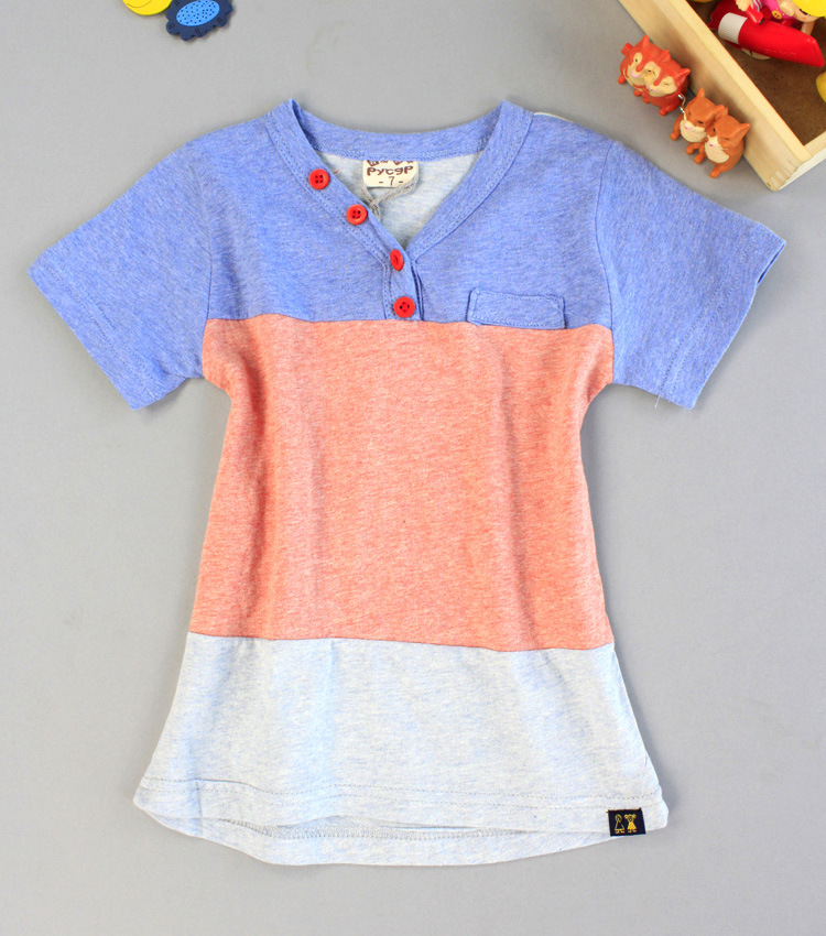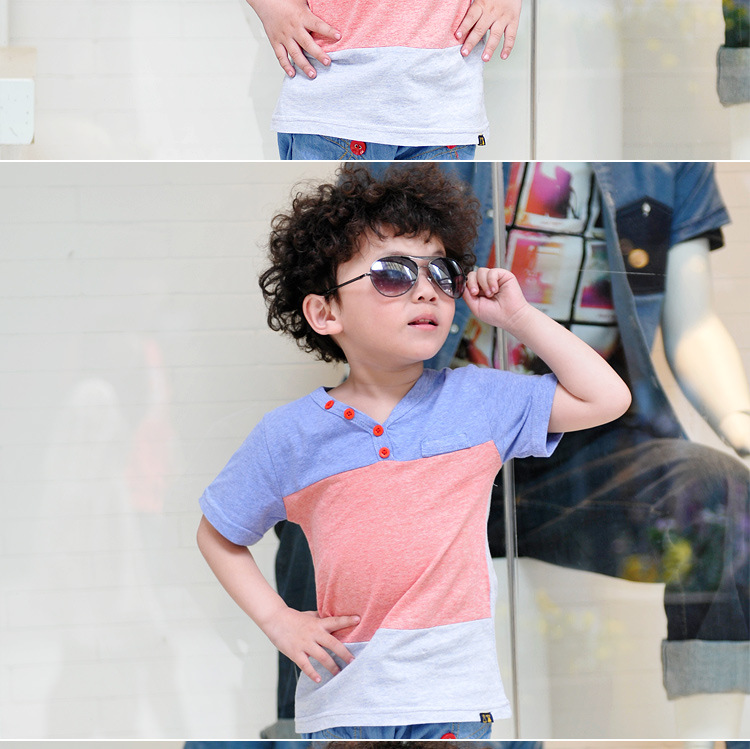 R6Y 原創童裝 皮猴西西熱賣款推薦 小V領三色拼接休閑百搭純棉T恤